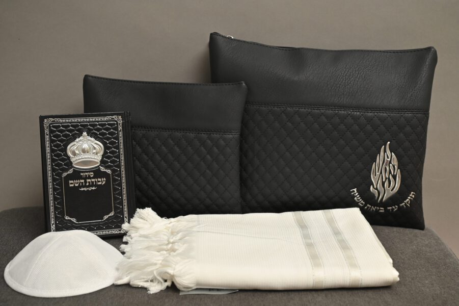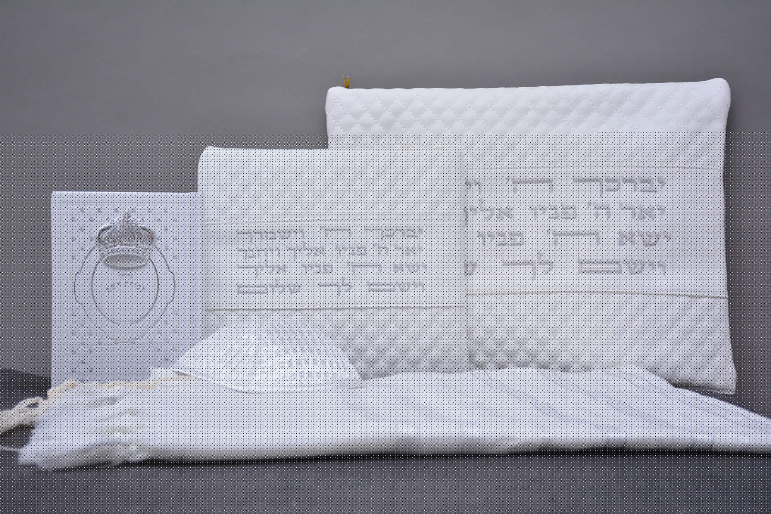 כיסוי לטלית ותפילין עם רקמת שם אישי, טלית מהודרת, סידור עם שם לגבר, כיפה