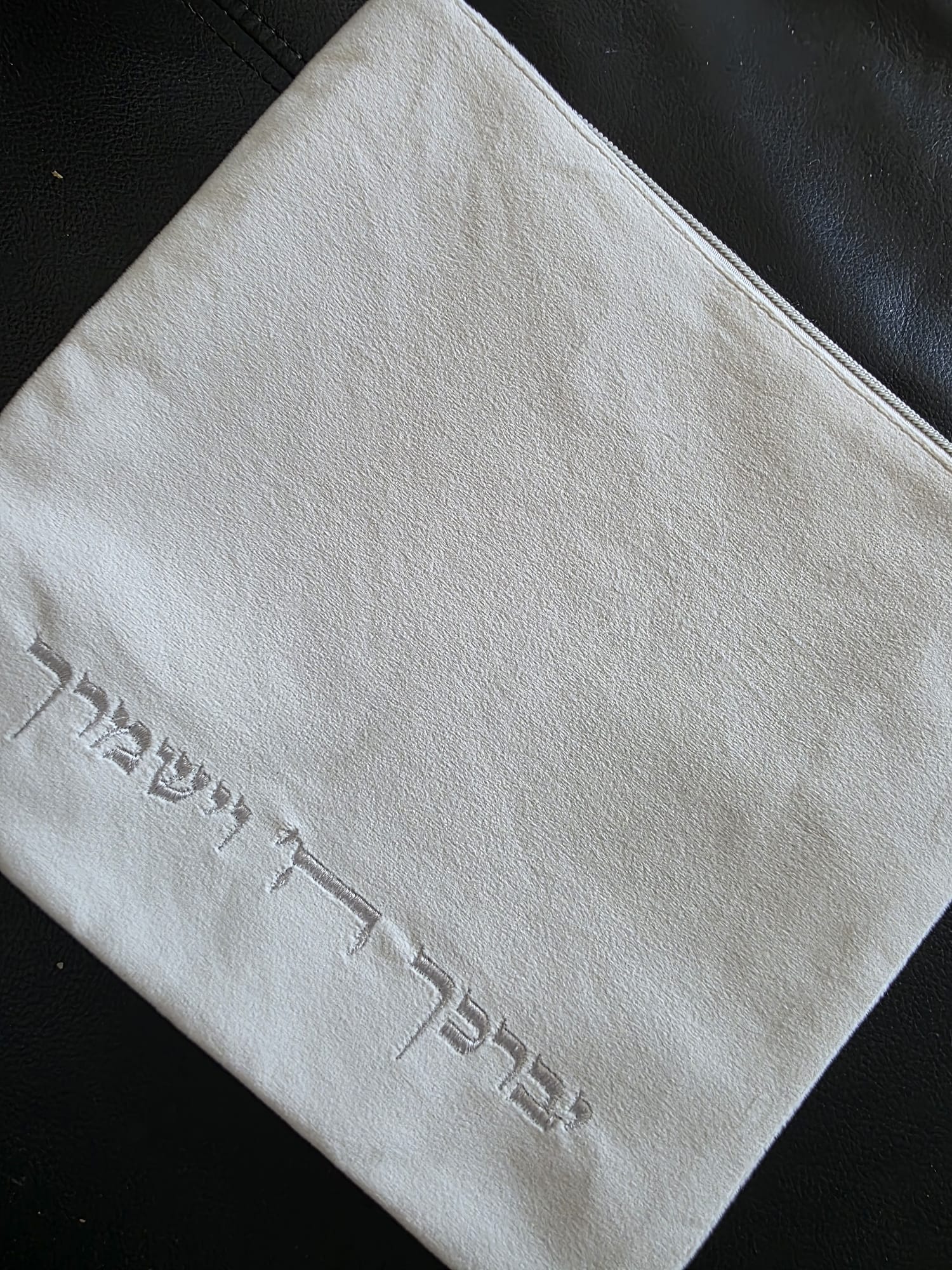 כיסוי לטלית ותפילין מקטיפה עם רקמת שם